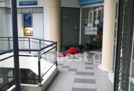 Ο συγκεκριμένος άνδρας έχει βρει, έστω και προσωρινά «κατάλυμα» στην πλατεία Γεωργίου, στην είσοδο ενός κτιρίου.